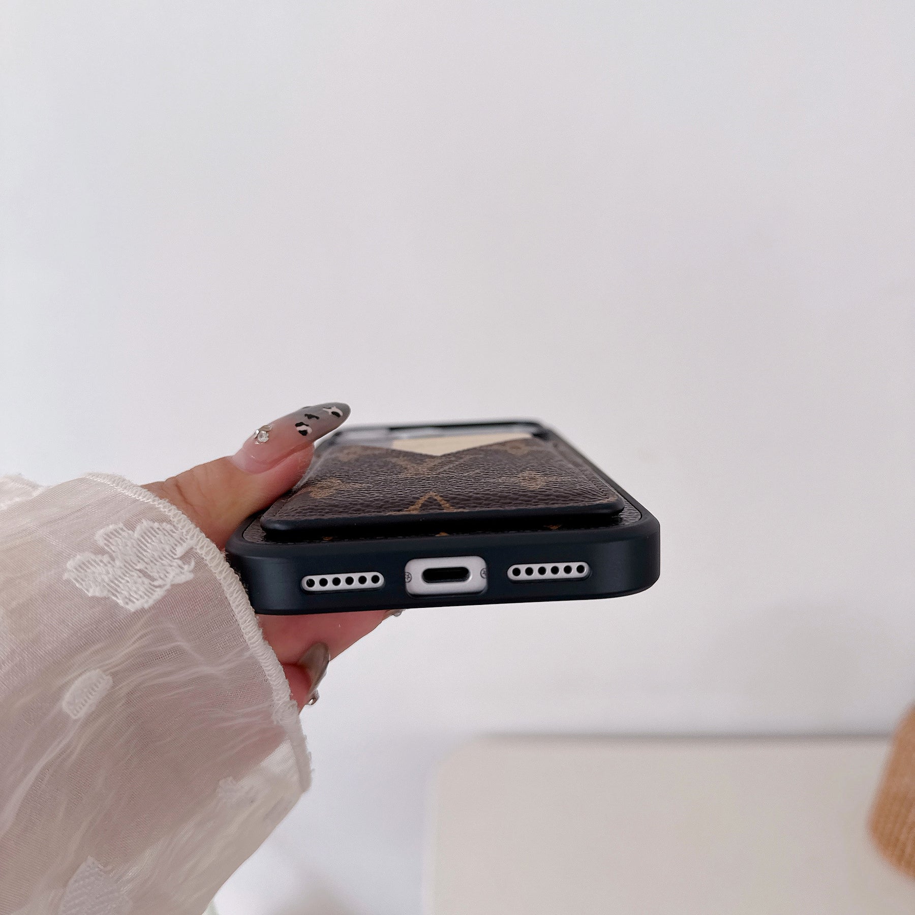 ✦ Built-In Card Pocket — Holds your cards, cash & ID instantly ✦ Premium Monogram Leather — Rich brown, soft-touch luxurious feel ✦ V-Shape Easy Access — One-handed card access in seconds ✦ Full Drop Protection — Shock-absorbing shell for daily peace of mind ✦ Slim & Lightweight — Maximum style, zero added bulk