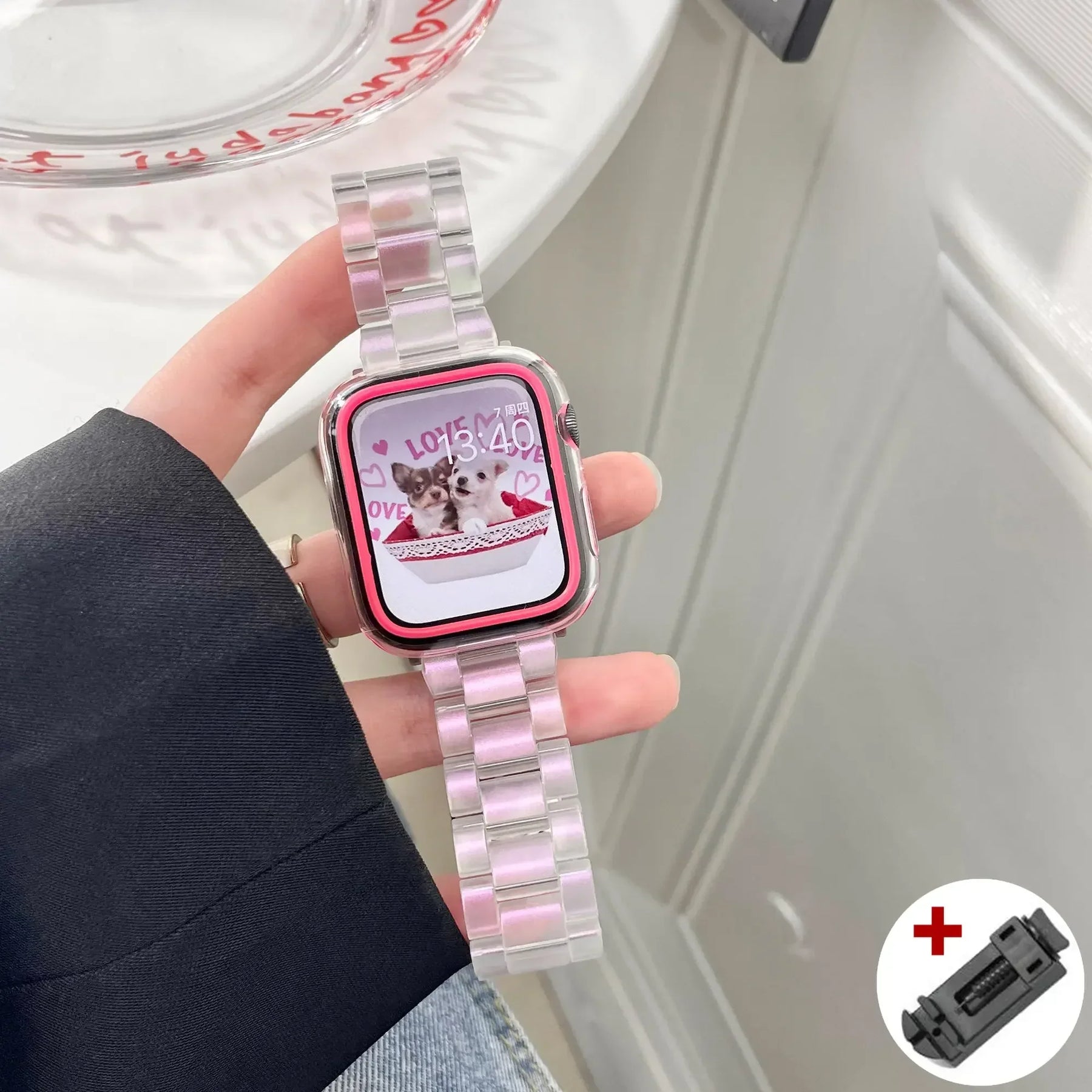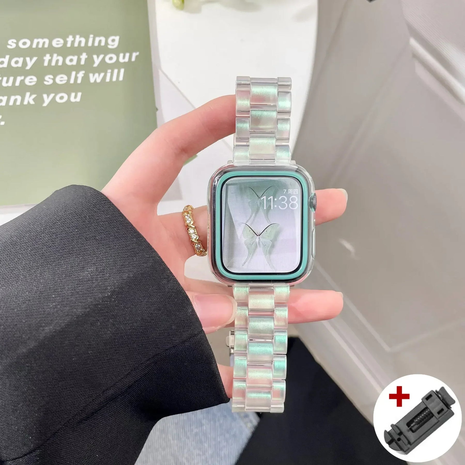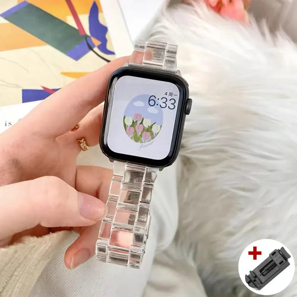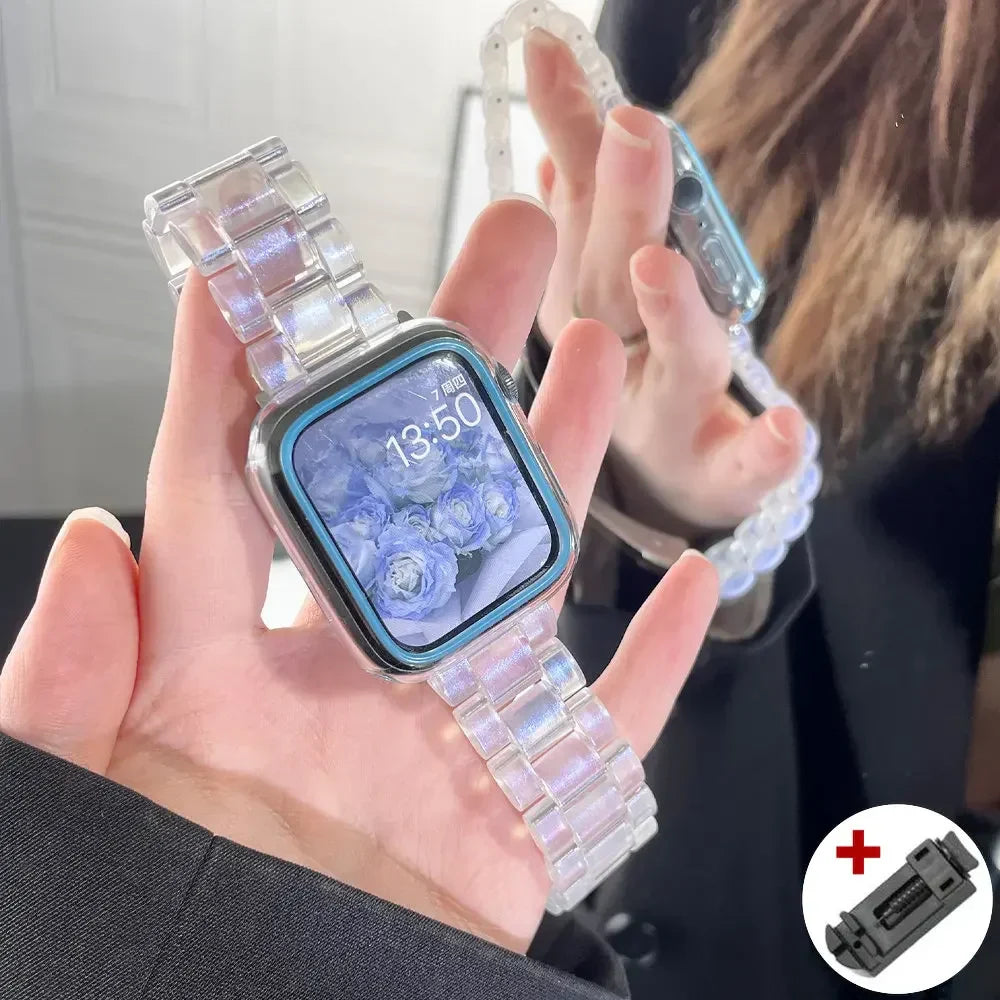 Expertly crafted for the Apple Watch Series, this Resin Rainbow Strap adds a touch of color and style to your wearable device. Made from high-quality resin, it ensures durability and a comfortable fit for everyday wear. Elevate your look with this vibrant and trendy strap for a unique and personalized touch.