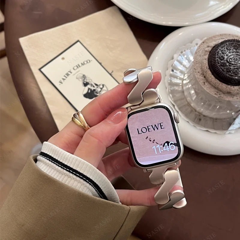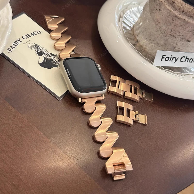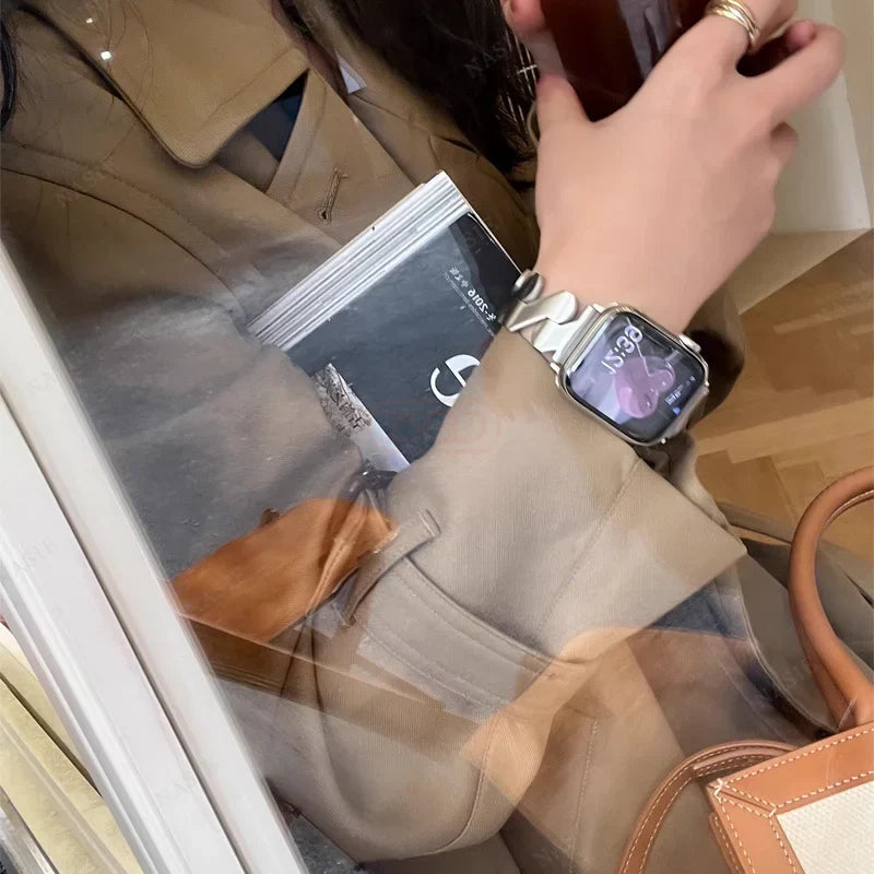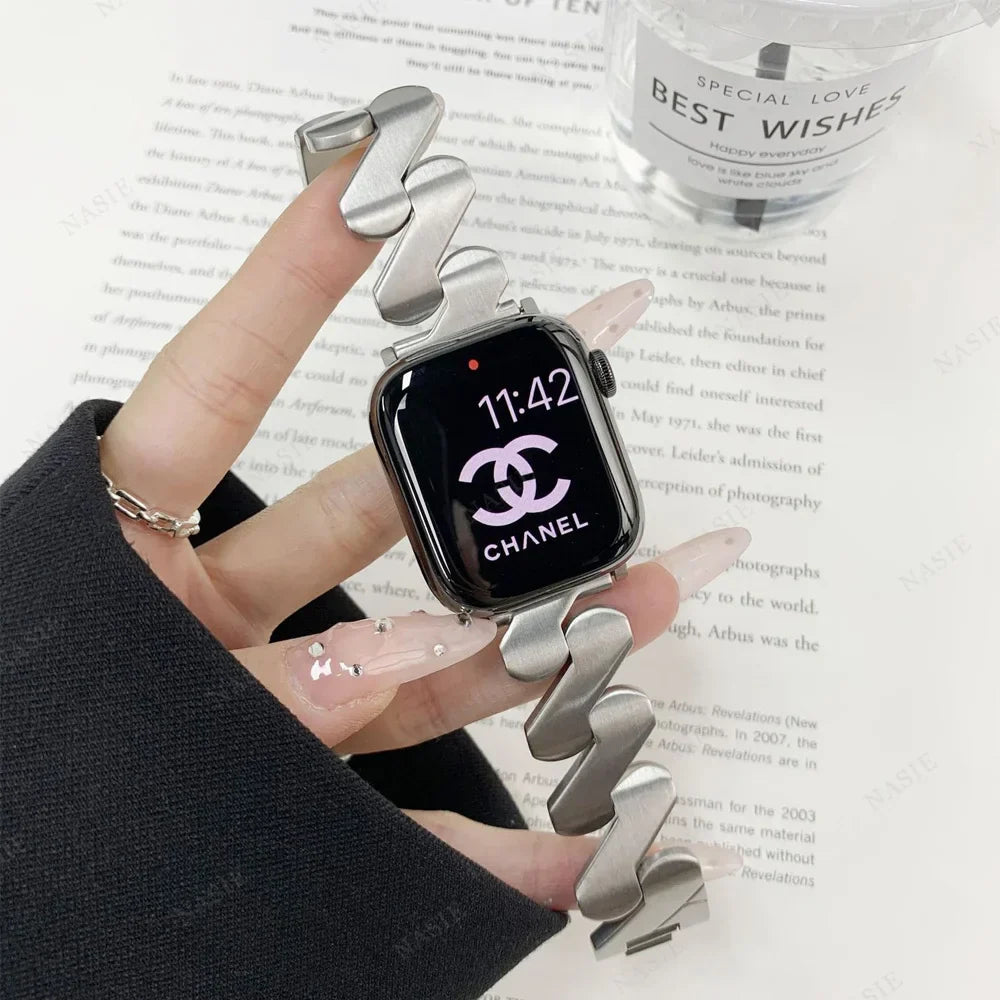 Gain a professional edge with our Stainless Steel Strap for the Apple Watch Series. Crafted with durable and elegant stainless steel, this strap combines form and function to enhance your daily wear. Upgrade your style and elevate your Apple Watch experience with this sleek accessory.